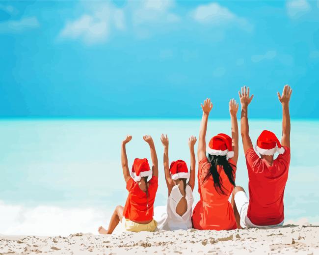 Family Christmas Beach Scene Paint By Numbers